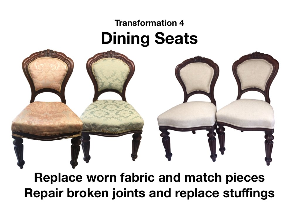 Many of these are documented projects which you can find by clicking on an image. More can be seen by following Restoration, Recovering or Soft Furnishings links.