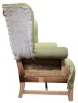 This wingback chair, bought some 25 years ago, is a much loved and used chair. Consequently the fabric has worn. Once the fabric has been replaced the chair will give many more years of use.